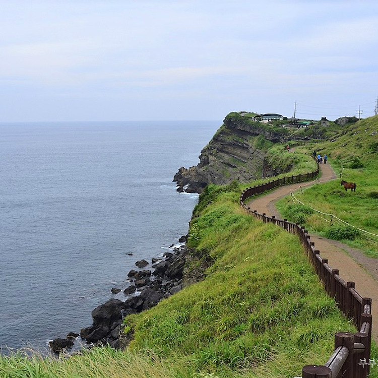 바다는 제주 특유의 에메럴드 빛깔이 흐린 날임에도 제 색감을 보여주고 있죠.