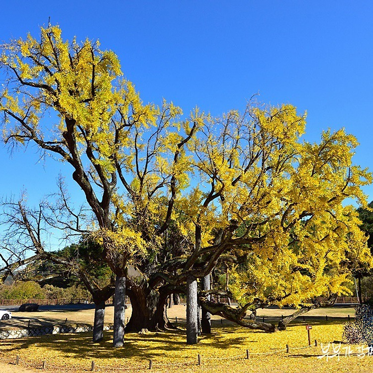 법당 입구를 지키고 있는 두 그루의 은행나무가 그 주인공인데요.