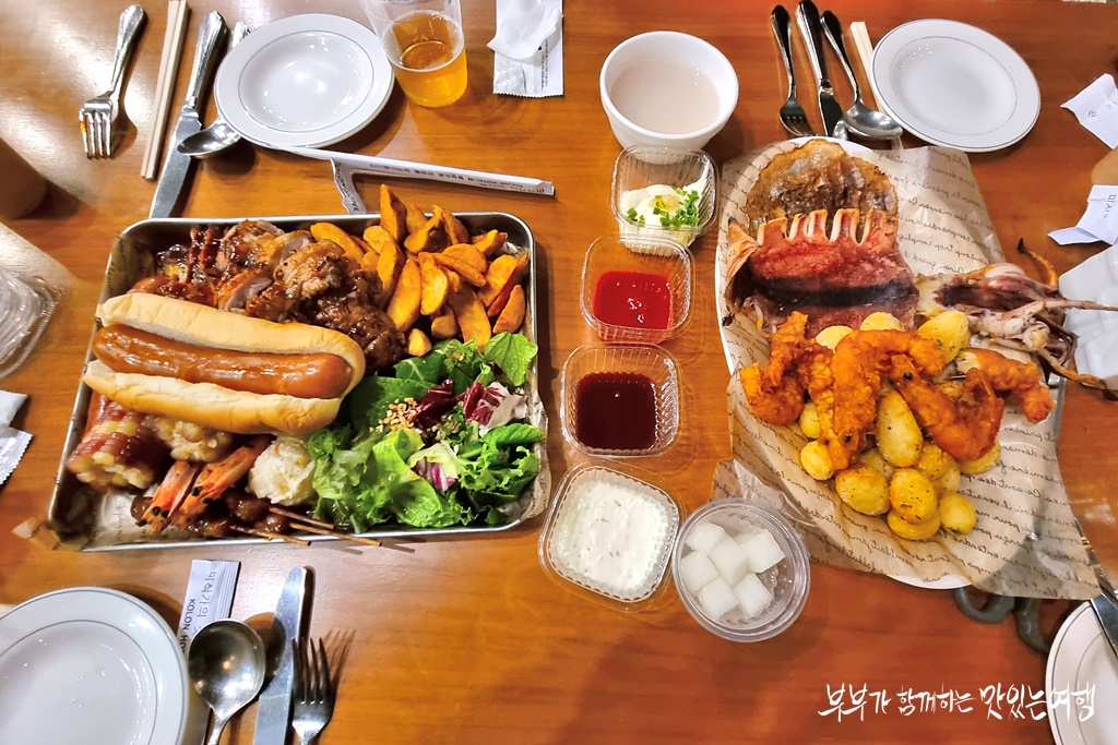 생맥주와 막걸리를 무한으로 마실 수 있는 메뉴를 비롯하여 바베큐와 다양한 안주 등 풍성한 먹거리로 운영되죠.