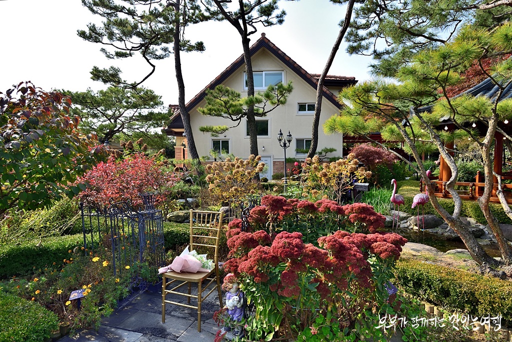 다양한 수목과 꽃이 어우러진 예쁜 정원에서의 멋진 힐링타임을 가질 수 있는 공간이 아닌가 싶습니다.