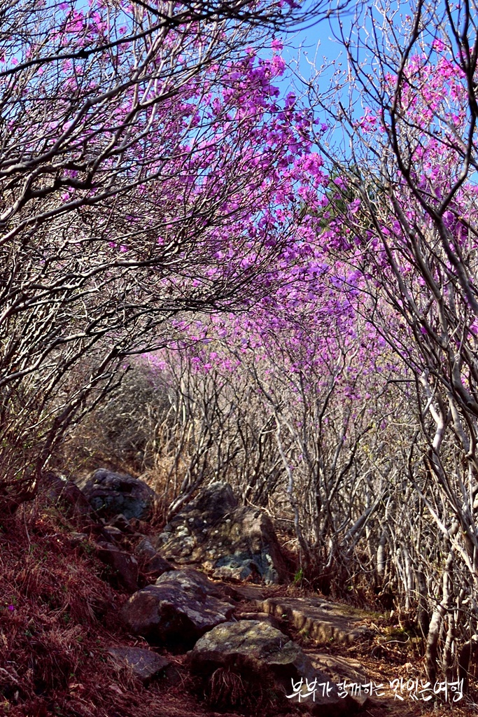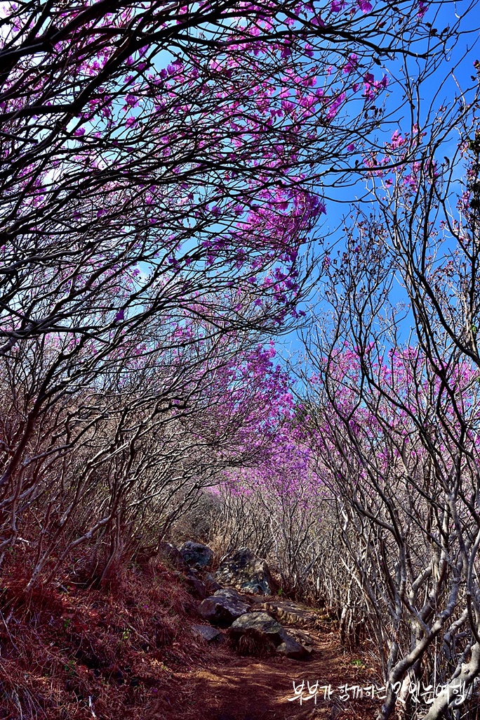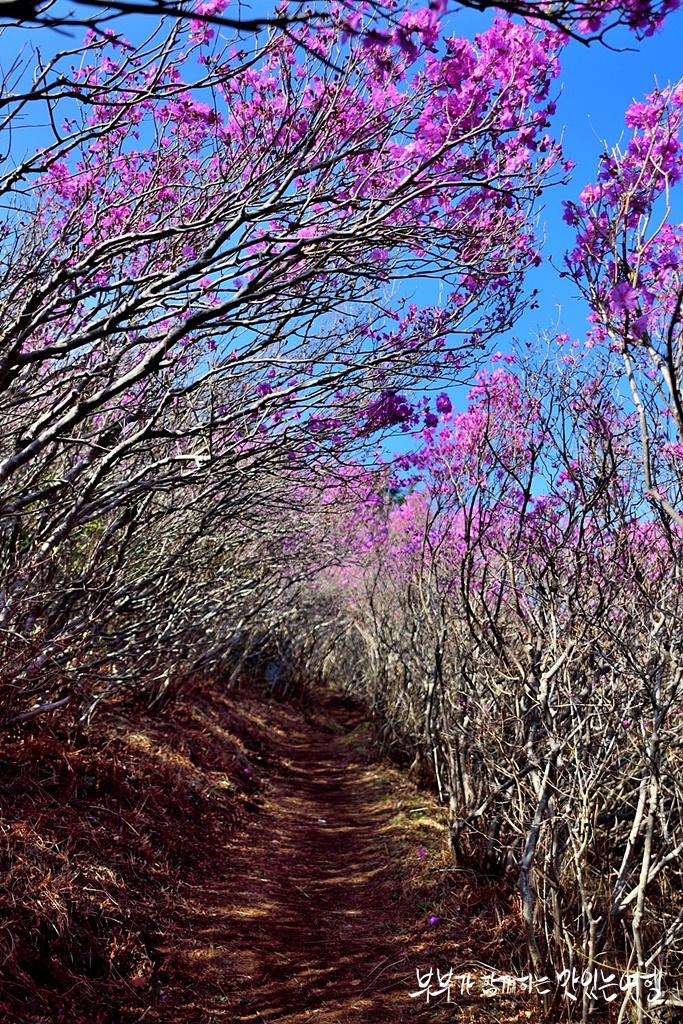 파란 하늘 대신 분홍빛 진달래가 하늘이 되는 환상적인 길이랍니다.