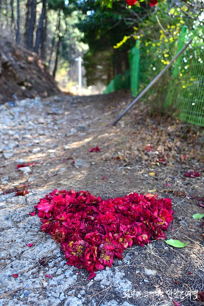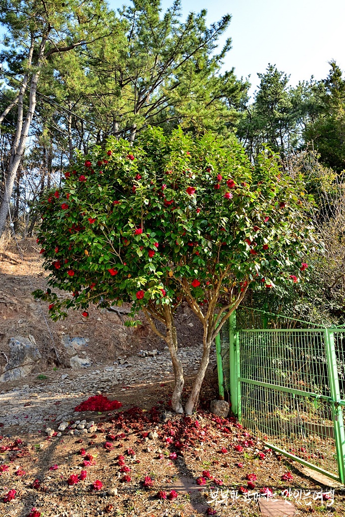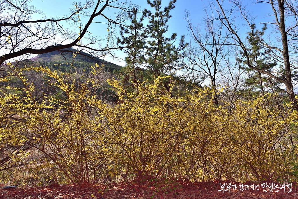 아직까지 화려함을 간직한 동백꽃과 물감을 푼 듯 진하게 물든 개나리의 노란 물결도 볼 수 있는데요.