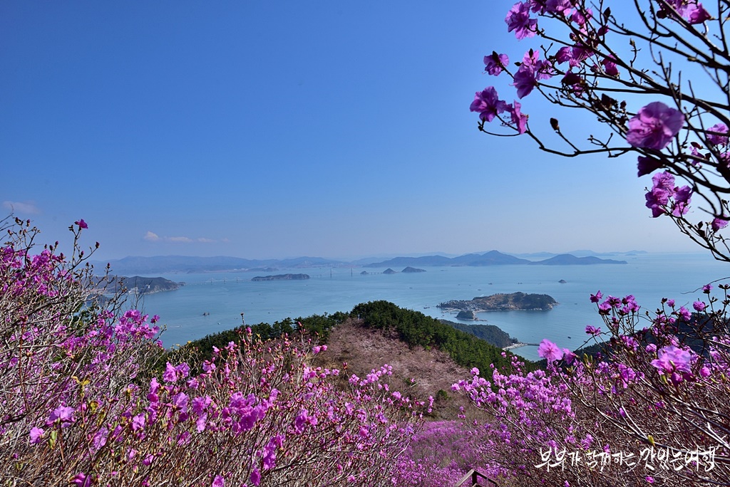 화사한 진달래 물결과 거제의 바다 풍경이 어우러져 액자 속의 그림을 보는 것 같은데요.