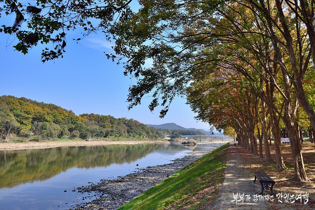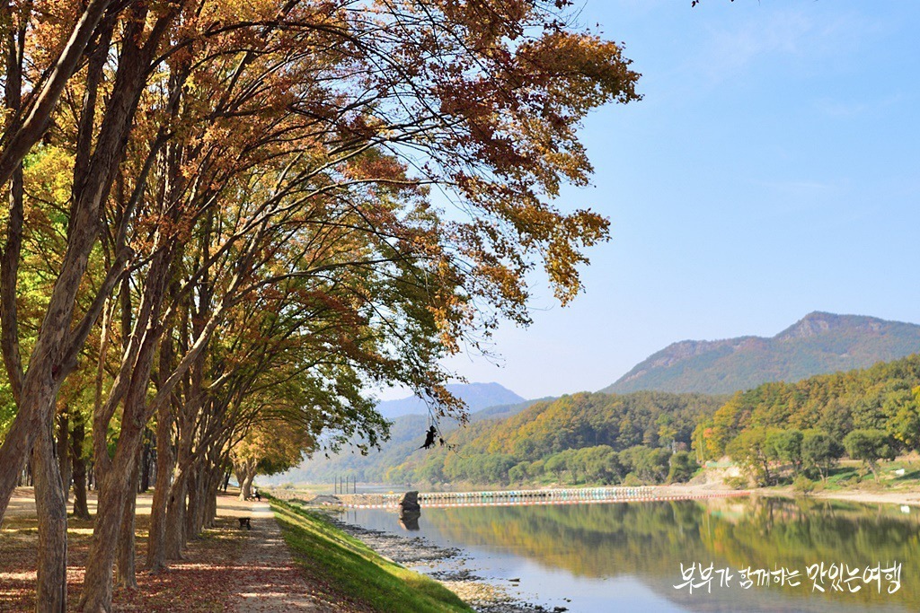 오색빛의 짙은 단풍숲과 금강천의 조화는 엽서속의 그림을 연상케 한답니다.