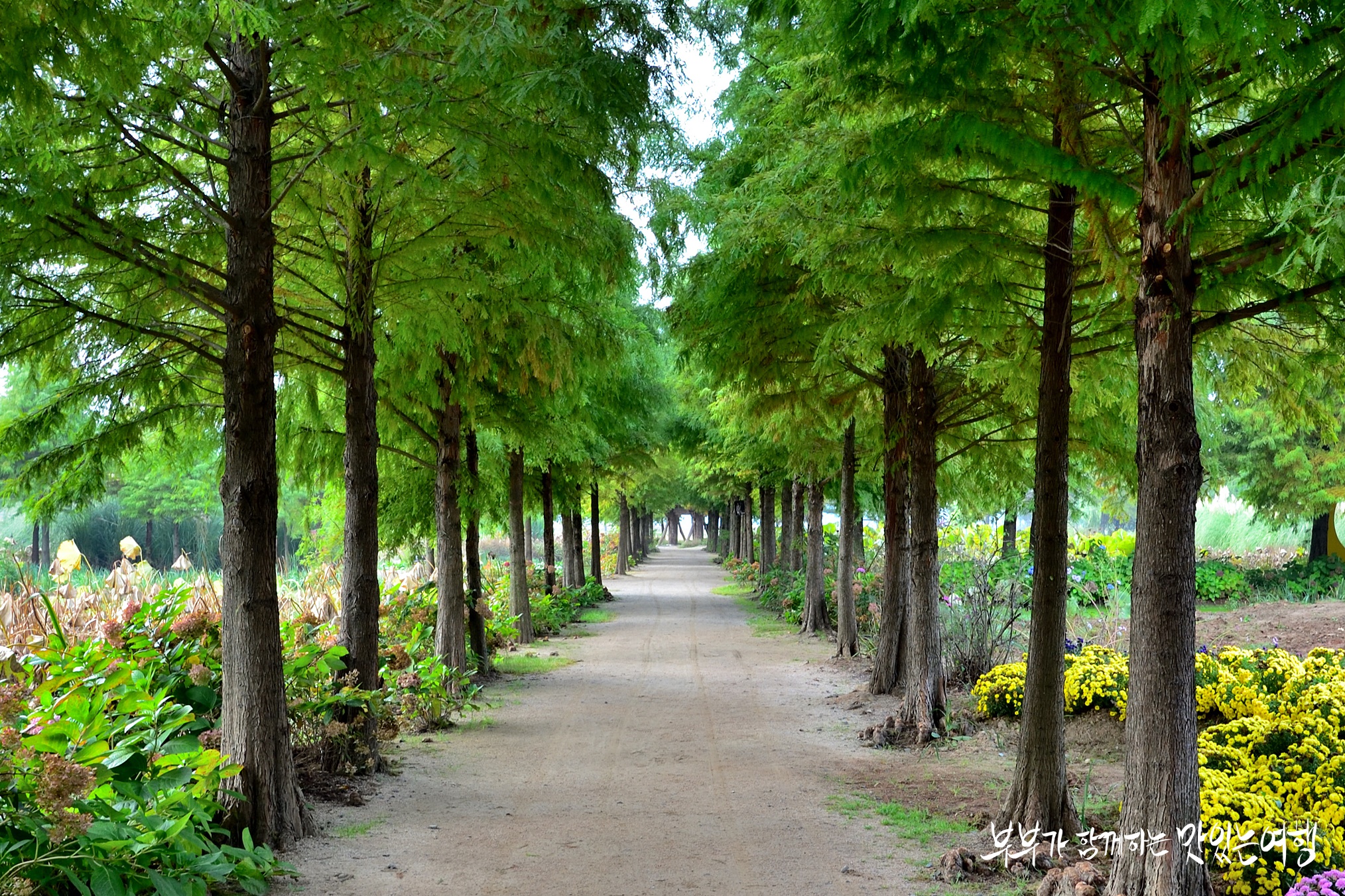 다양한 나무들이 메타세콰이어 길을 이루며 볼거리를 안겨줍니다.