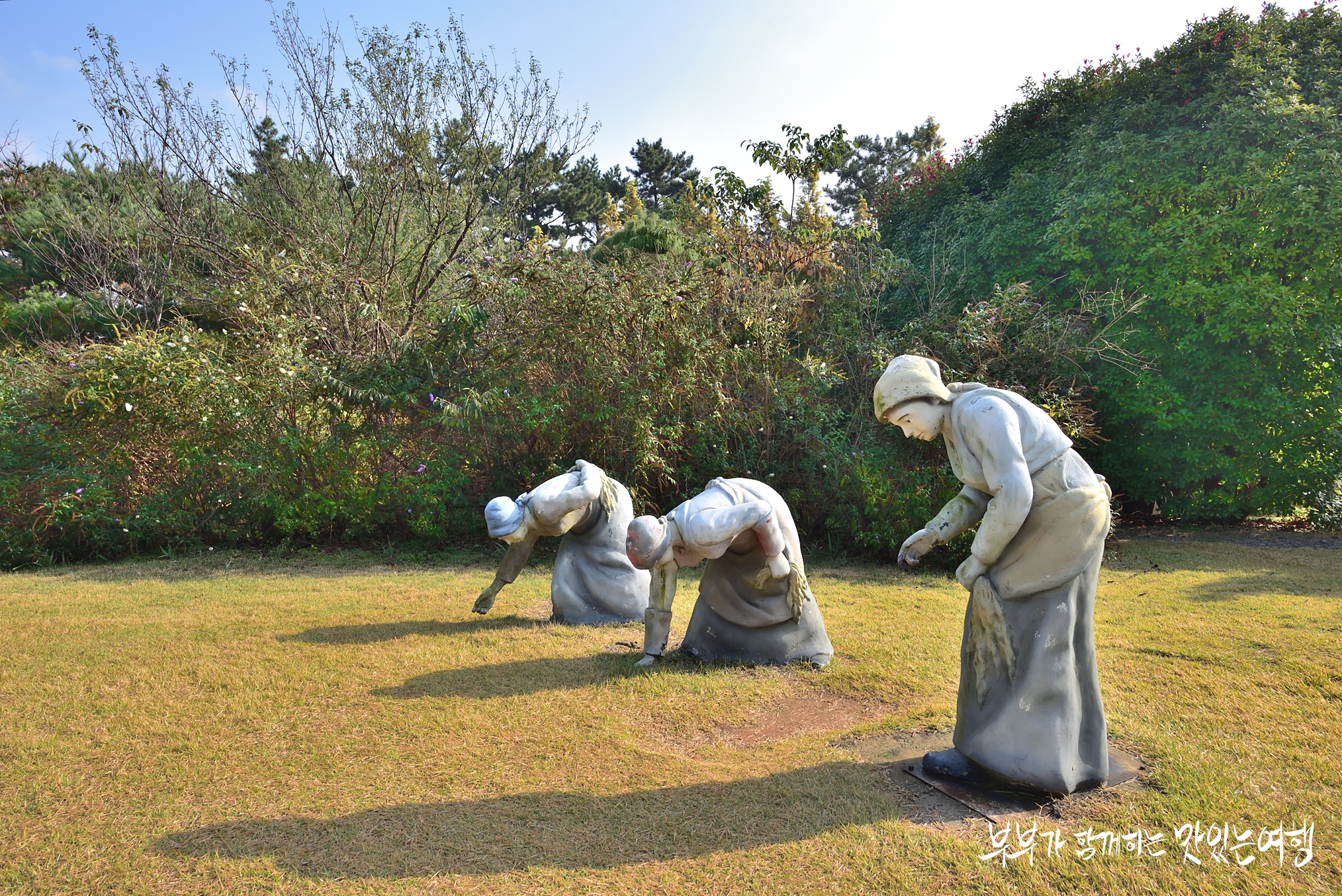 카페의 넓은 잔디마당에 프랑스 화가인 밀레의 작품을 조형물로 만들어 놓았죠.