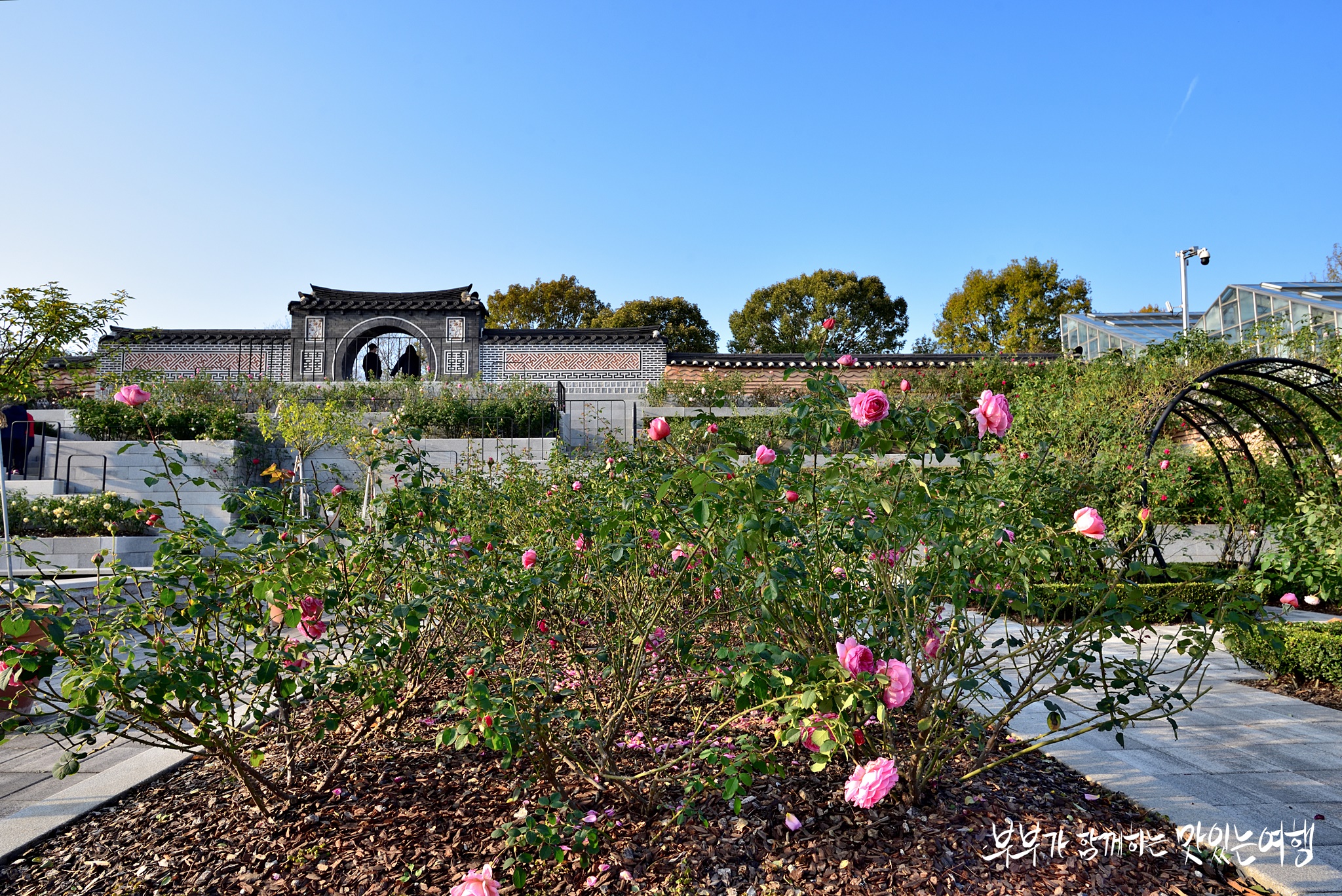 이 계절에 웬 장미? 라고 할지 모르지만 전주수목원의 장미원에서는 곳곳에서 활짝 핀 장미꽃을 볼 수 있죠.