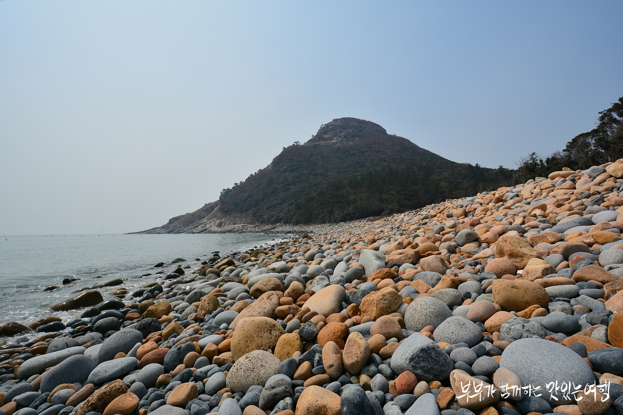 이곳에는 크고 둥글둥글한 갯돌이 모래 대신 해변을 뒤덮고 있죠.