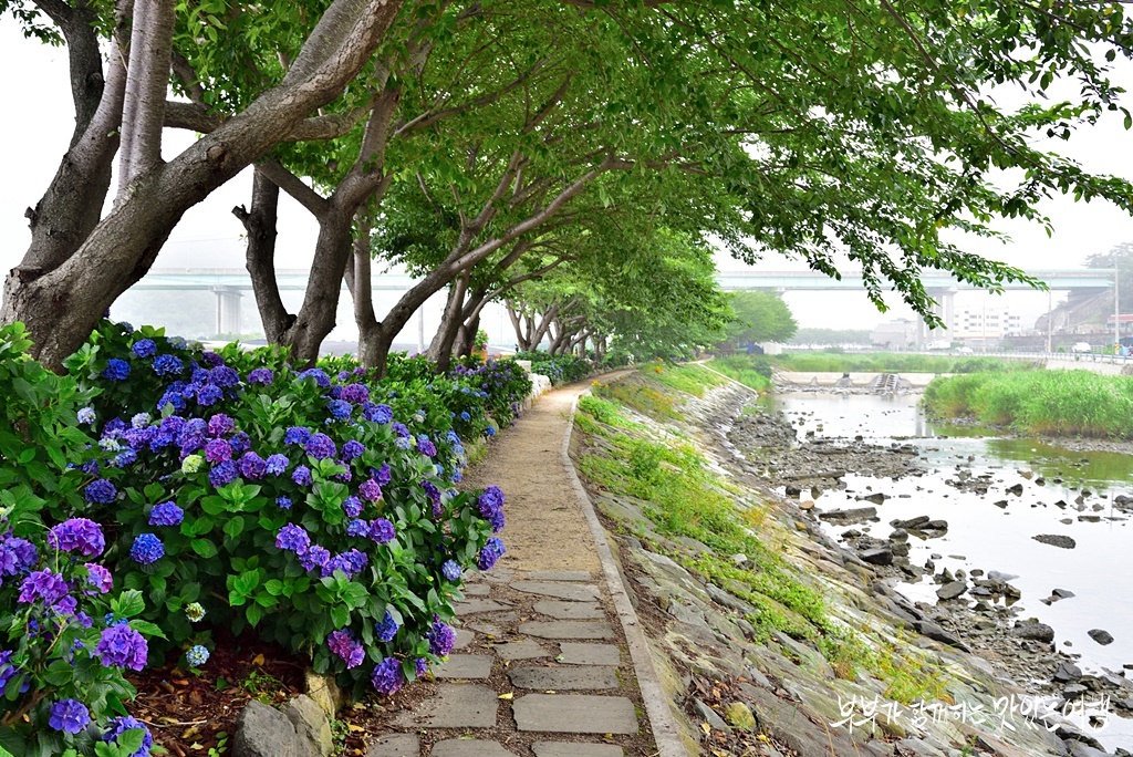 하천을 따라 이어지는 아름다운 수국꽃길이죠.