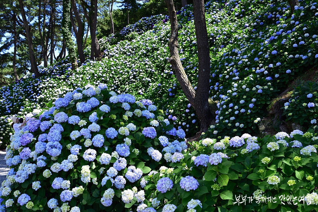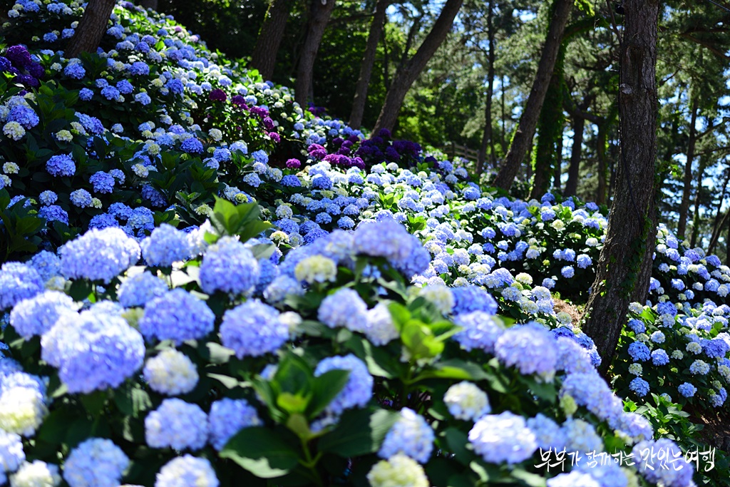형형색색의 수국이 화사한 빛깔을 뽐내면서 여행객들에게 즐거움을 안겨주는 곳입니다.