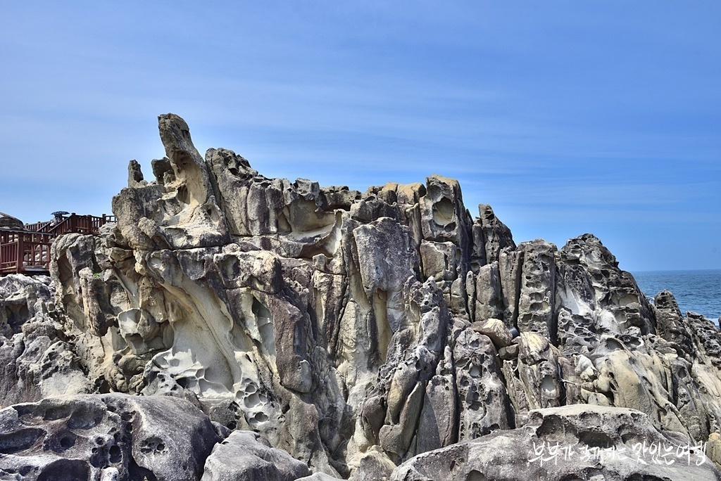 고성 문암해변에 자리한 능파대는 섬과 섬을 이루는 암석해안상에 발달한 타포니 군락입니다.