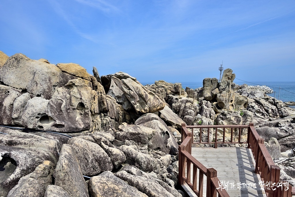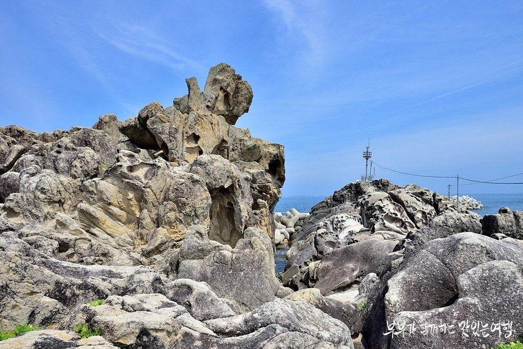 자그마한 포구와 바다위로 심어진 기암바위가 동해바다와 어우러지면서 뛰어난 풍경을 선사합니다.