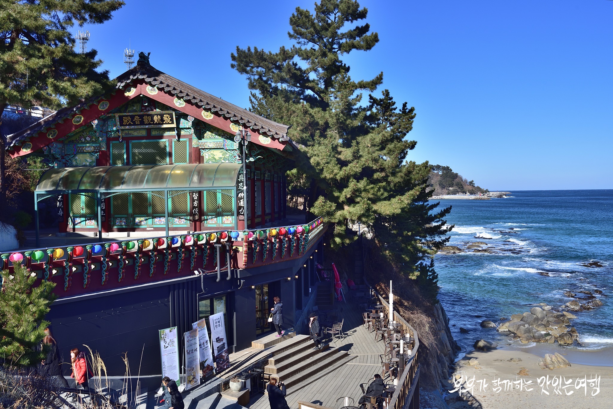 해송이 두른 의상대와 어우러진 바다위로 벌건 해가 솟아오르면 그야말로 환상적인 신비감으로 가득 차는 곳이랍니다.