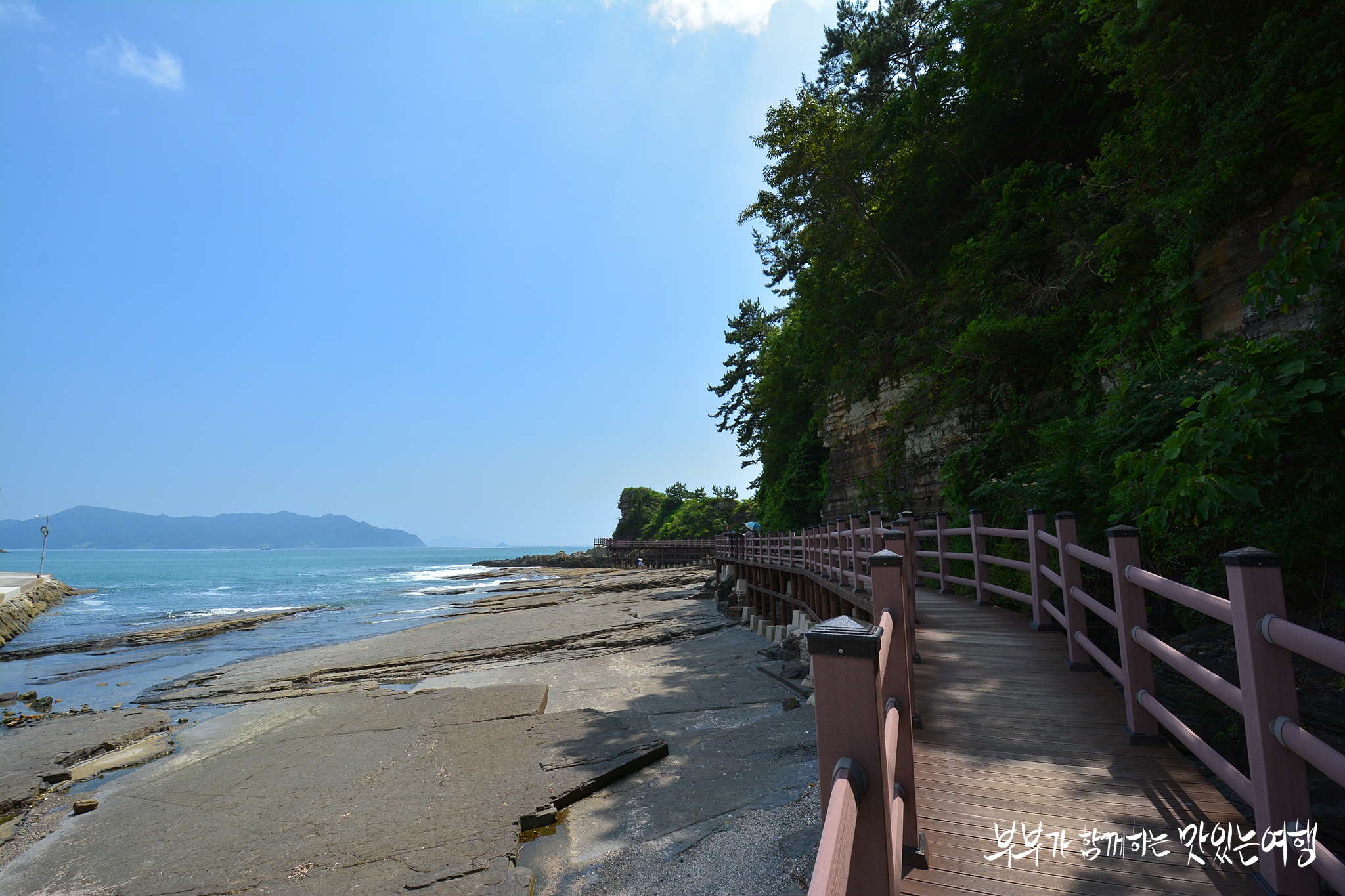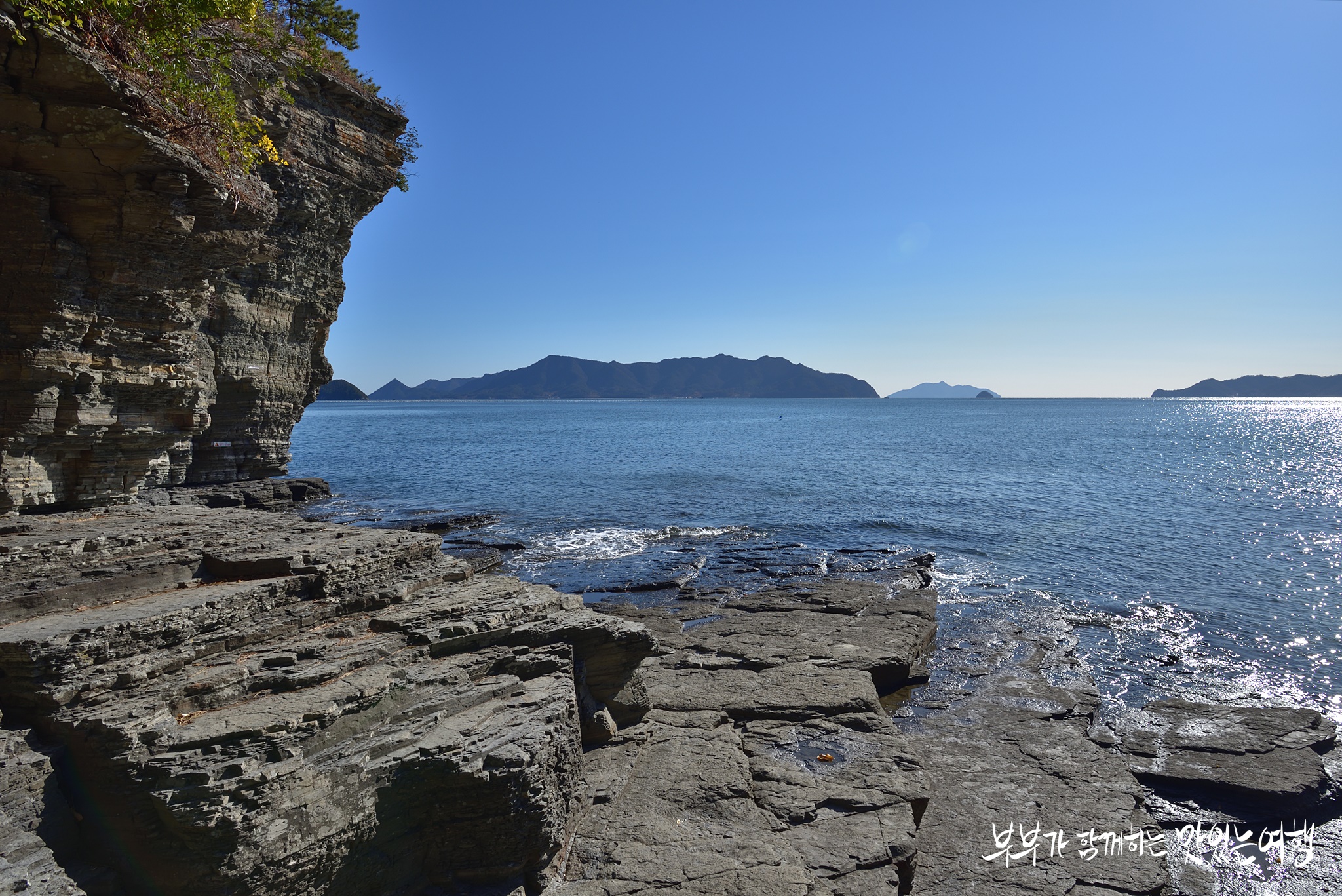 또한 수만 권의 책을 켠켠히 쌓은 듯한 퇴적층과 그 절벽 속으로 기묘하게 뚫려 있는 해식동굴이 그림같이 전개된답니다.