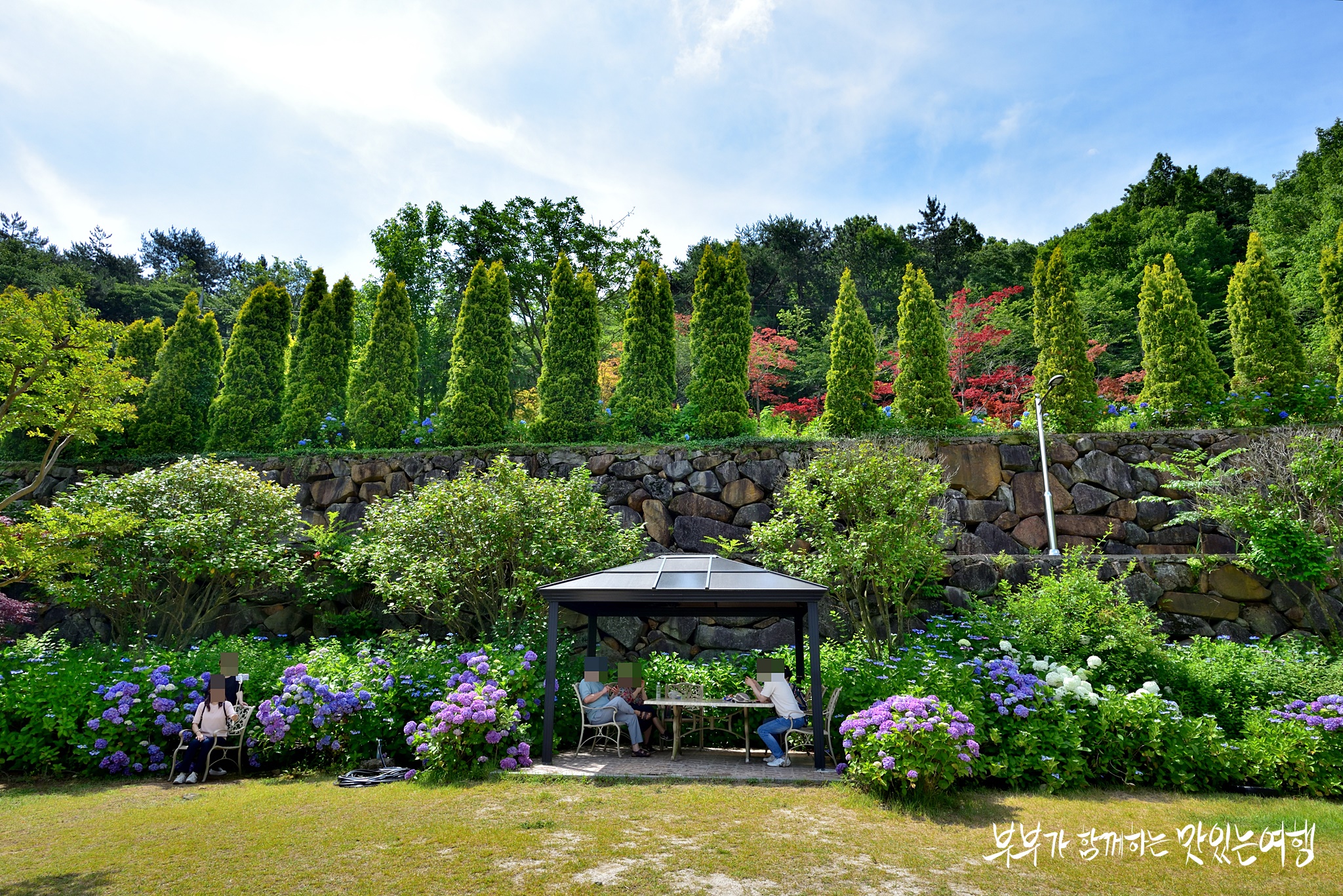 정원 곳곳을 가득 채우는 아름다운 수국꽃의 향연을 맘껏 즐길 수 있는 곳이랍니다.