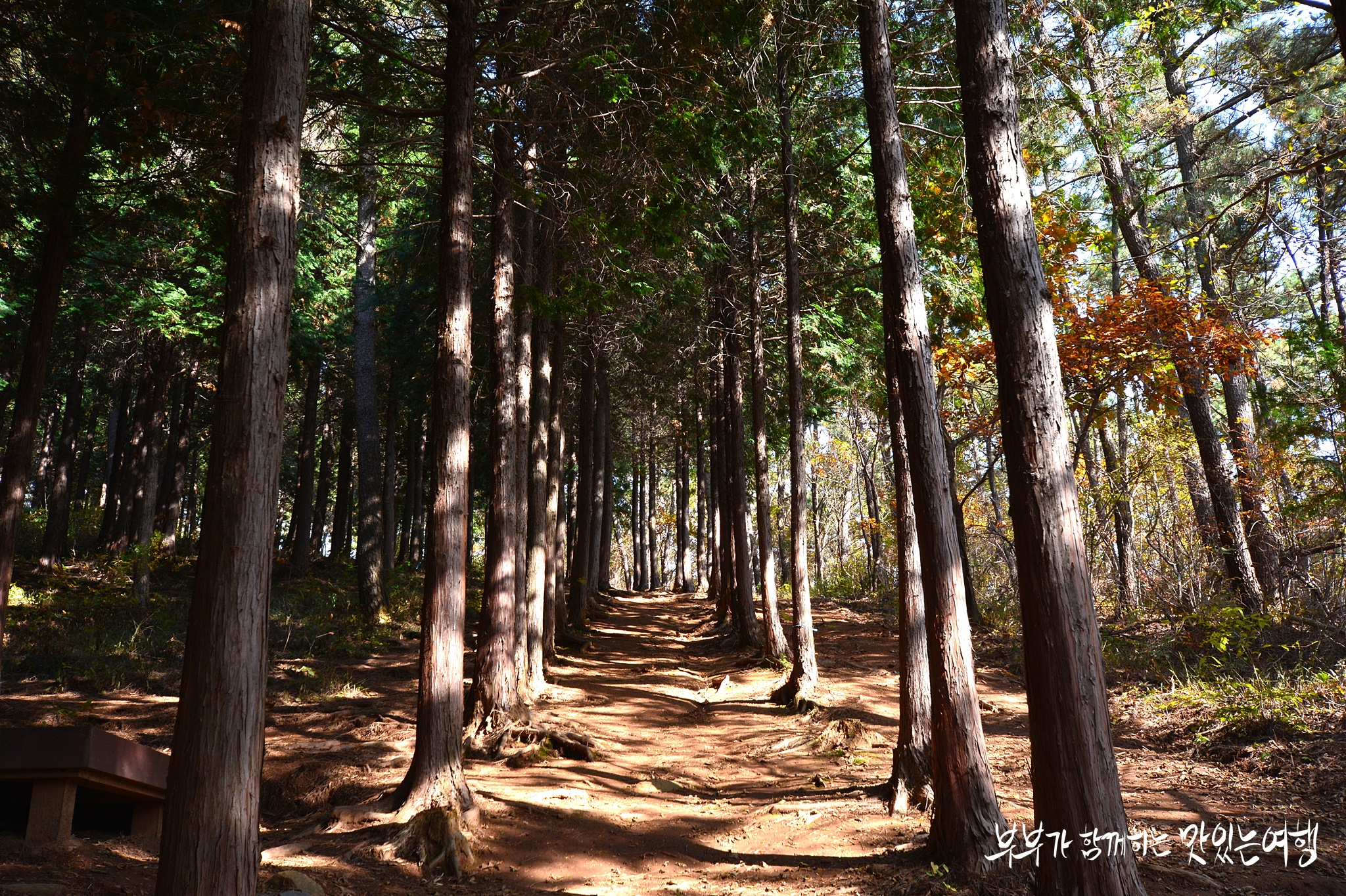맑은 공기와 하늘이 보이지 않을 만큼 울창한 갈모봉 산림욕장에는 편백나무와 삼나무를 비롯한 많은 나무들이 빽빽하게 들어서 있죠.