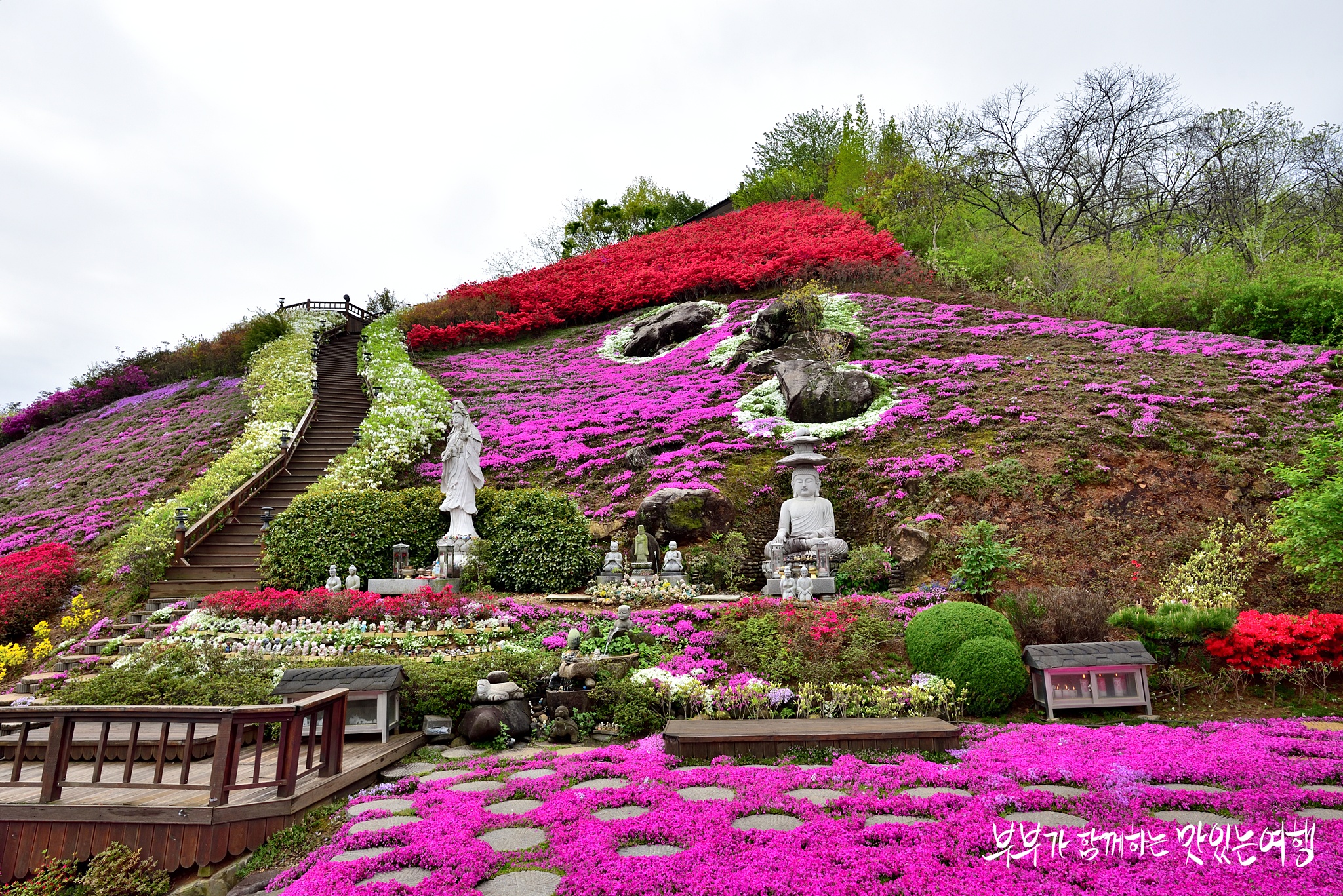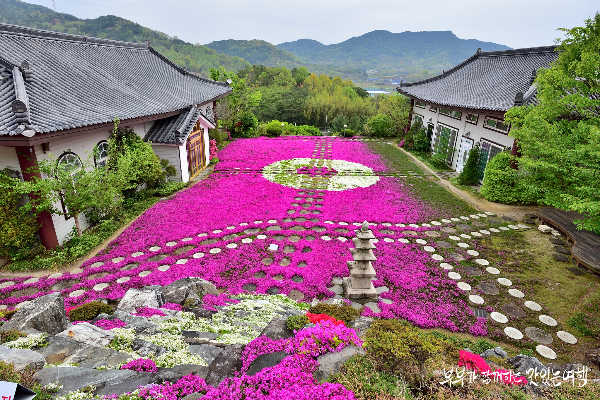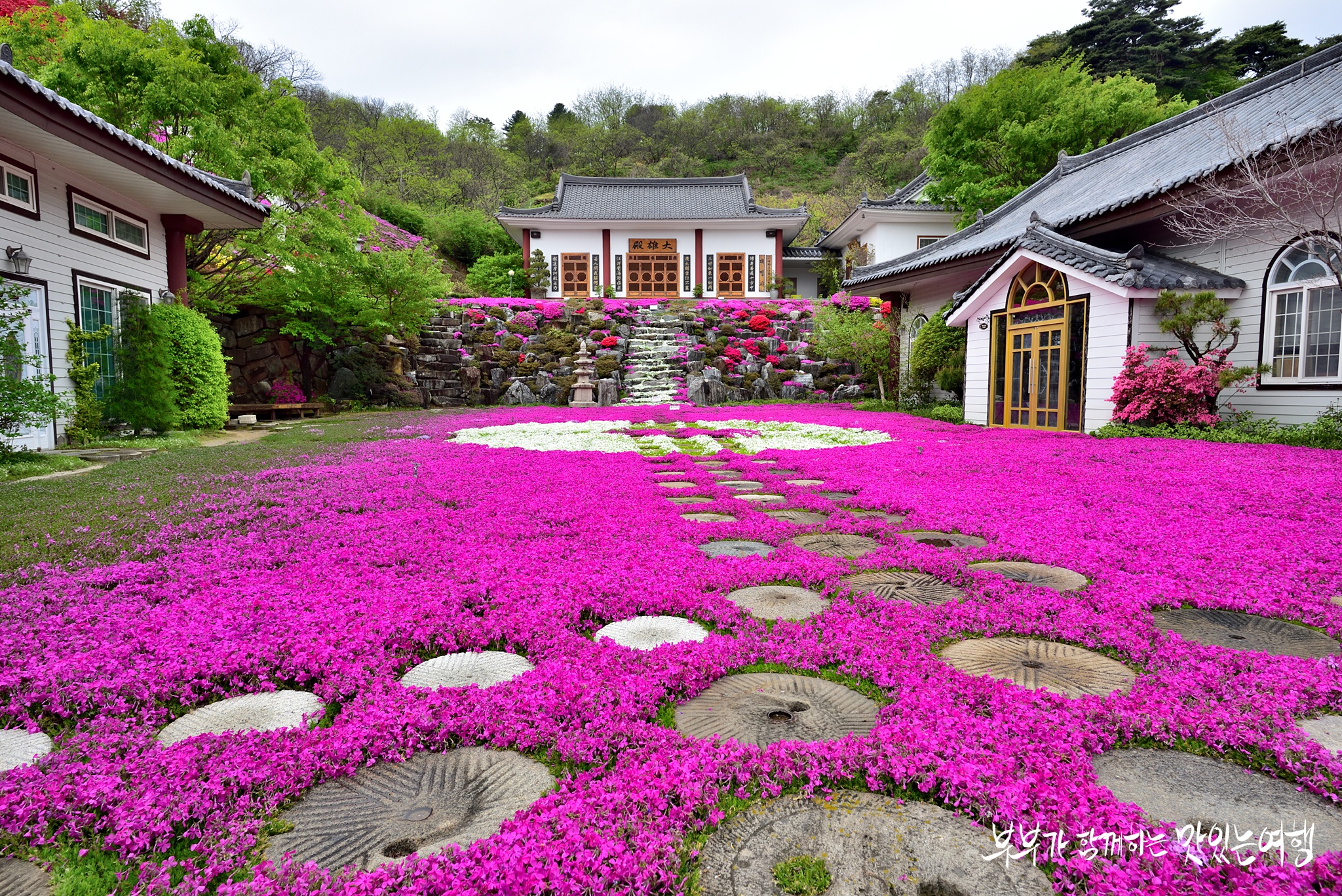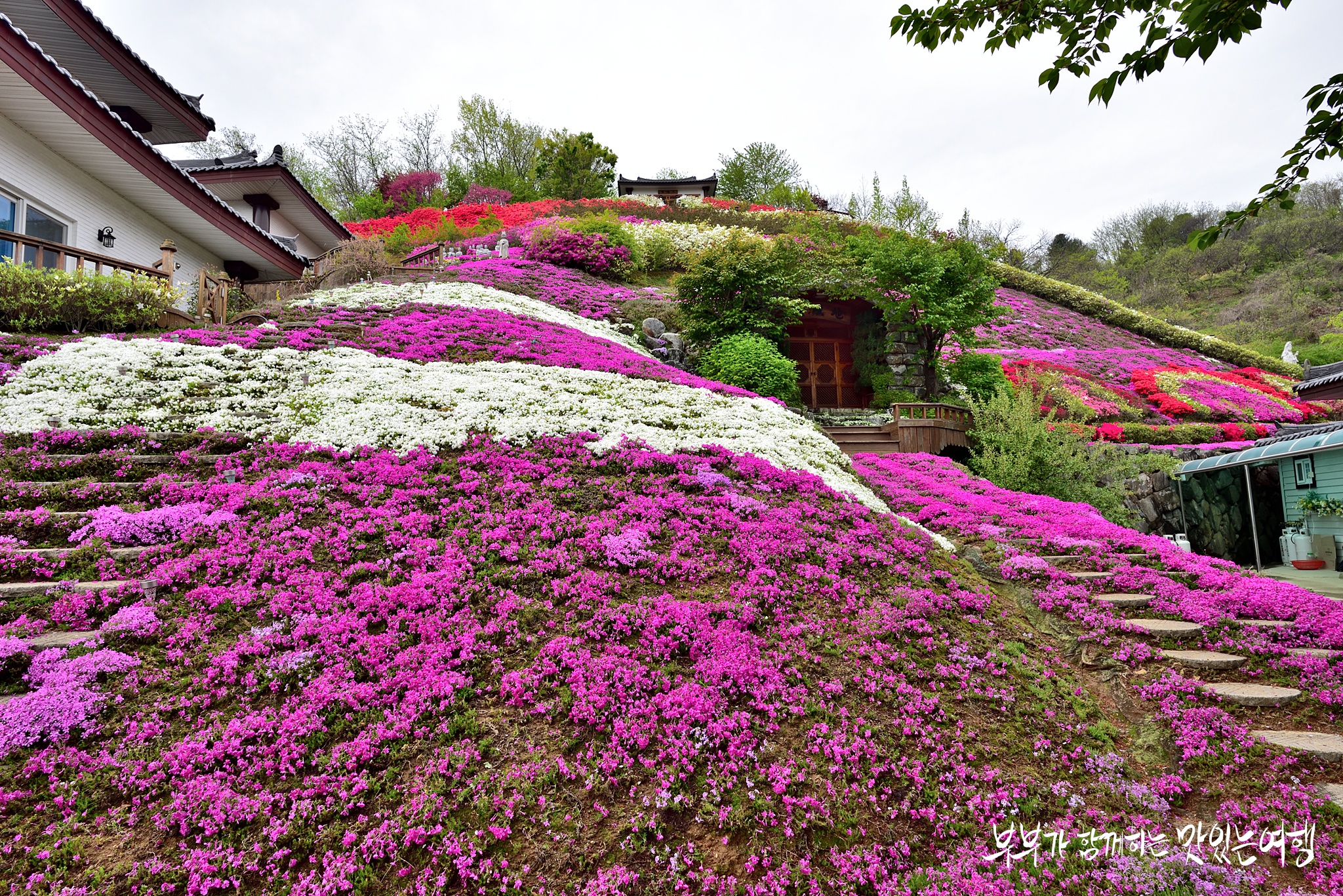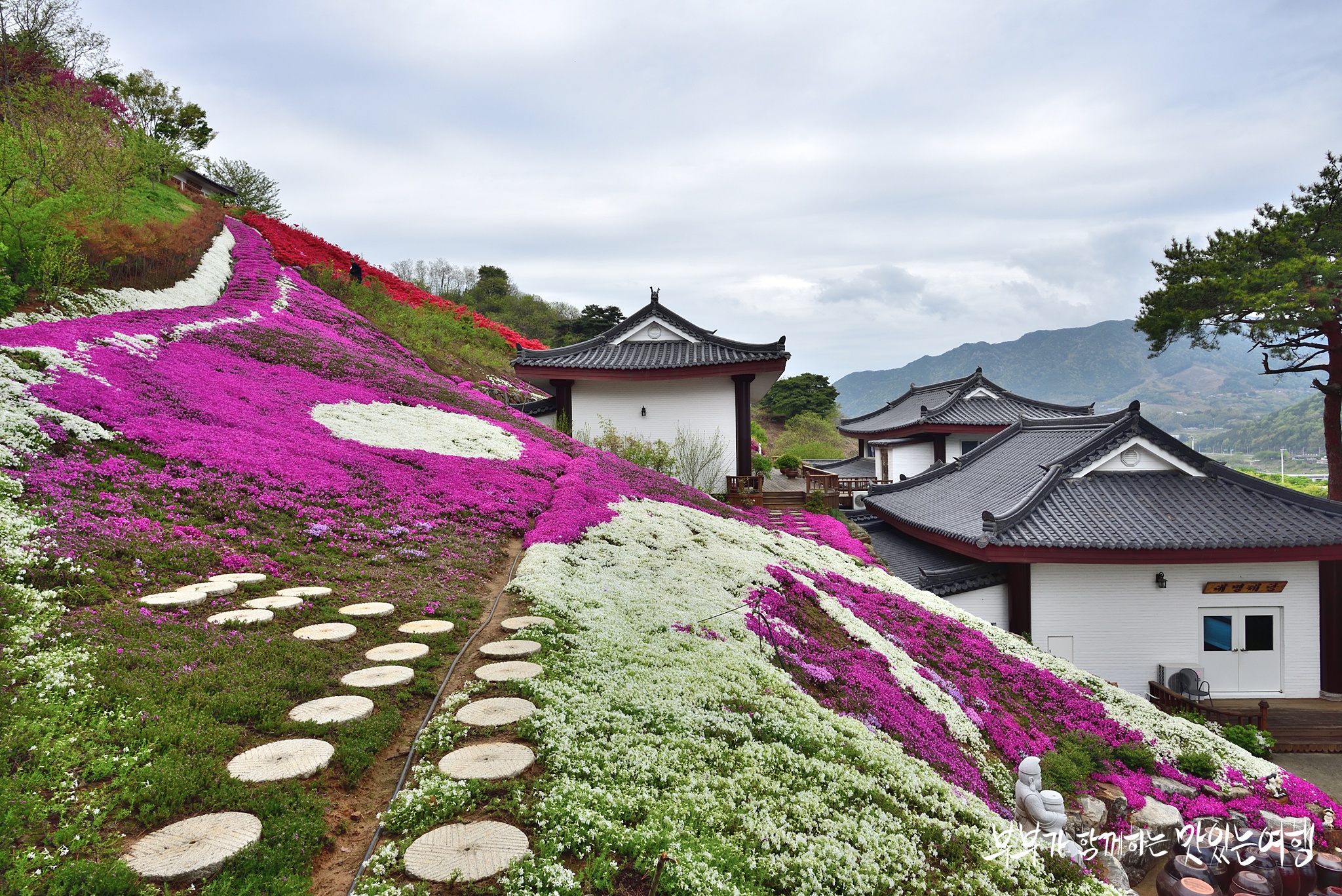 경내와 모든 언덕을 꽃잔디와 철쭉, 영산홍 등이 가득 메우고 있어 그야말로 꽃동산에 온듯한 착각을 불러일으키는데요.