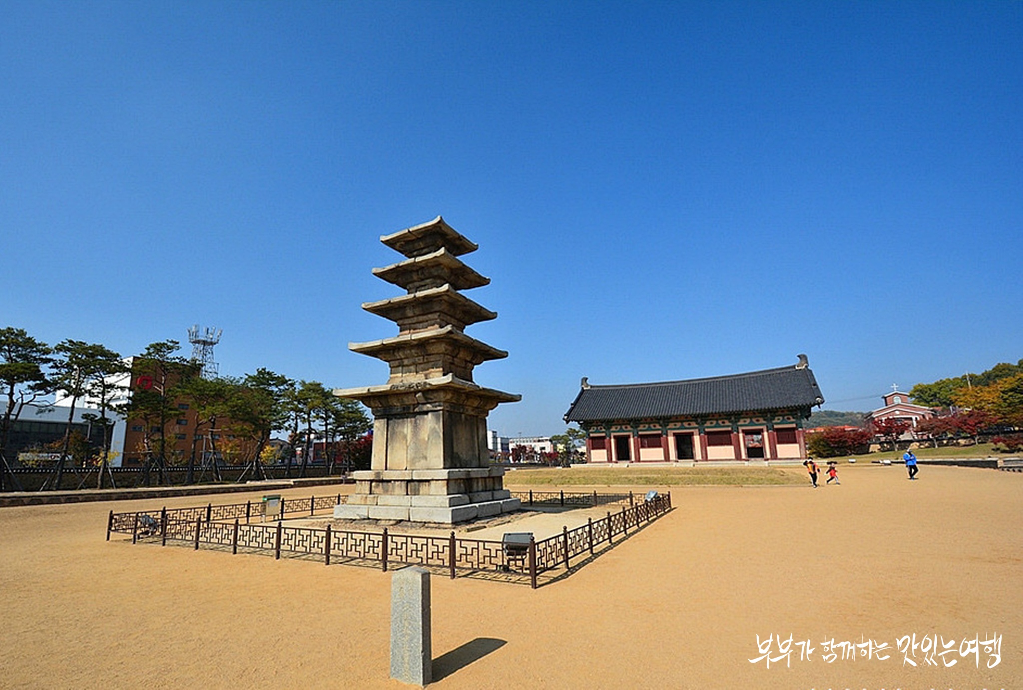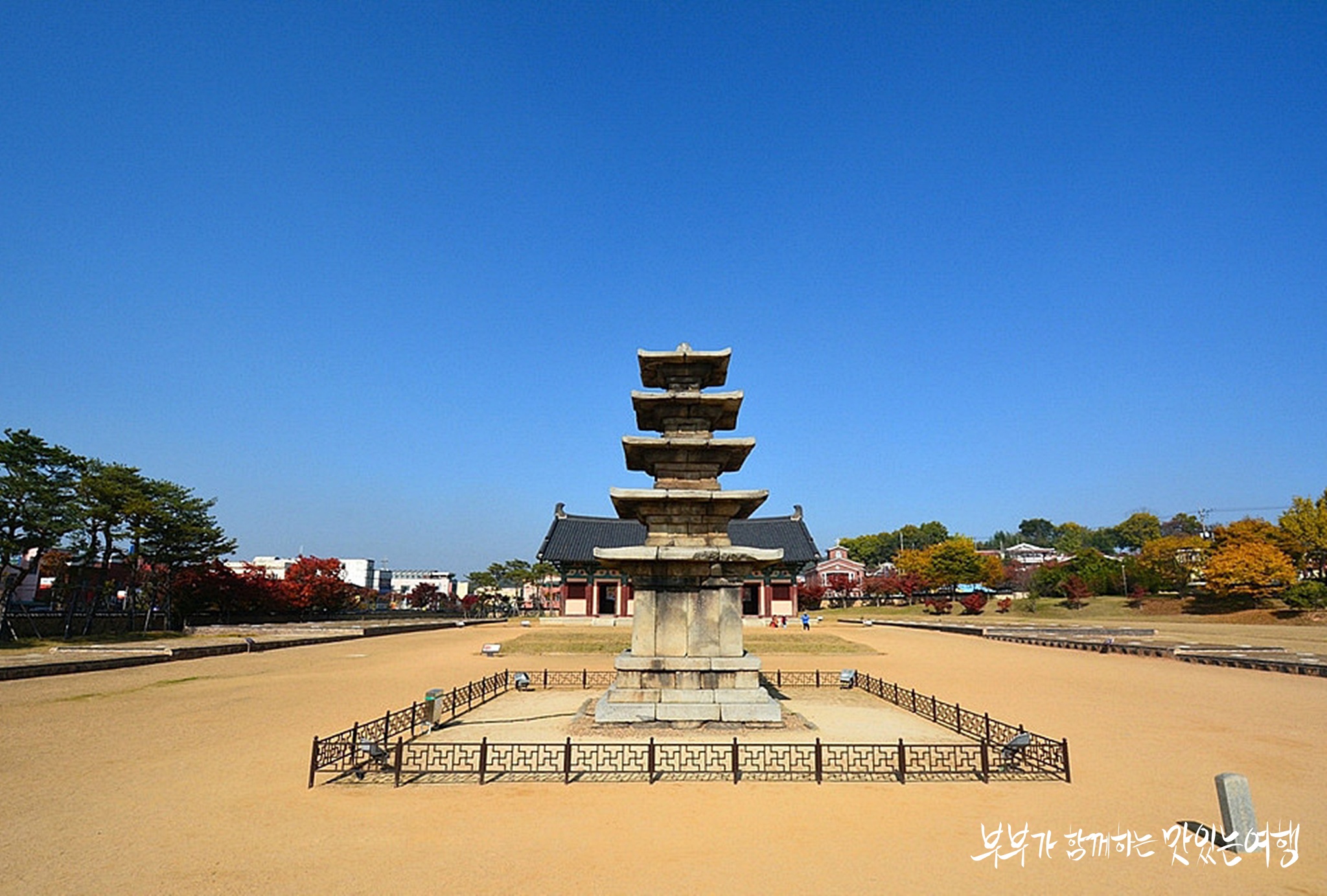 국보 제9호로 지정된 정림사지오층석탑과 금당지, 강당지 등이 남아 있는 백제고유의 사찰 건축을 보여주는 곳이죠.