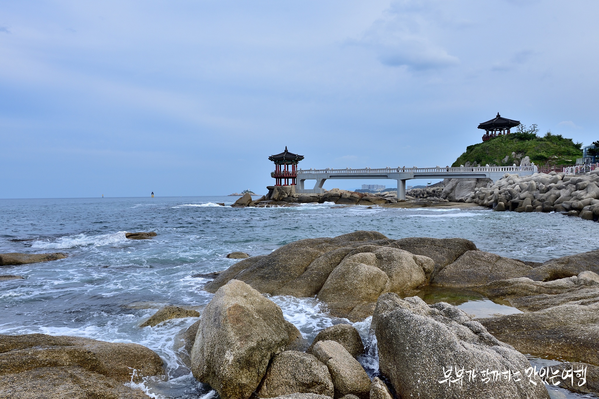 영금정에는 바다와 바위 언덕 위에 두 개의 정자가 마련되어 있는데 동해의 푸른 바다와 정자의 어우러짐이 너무나 멋스러운 곳인데요.