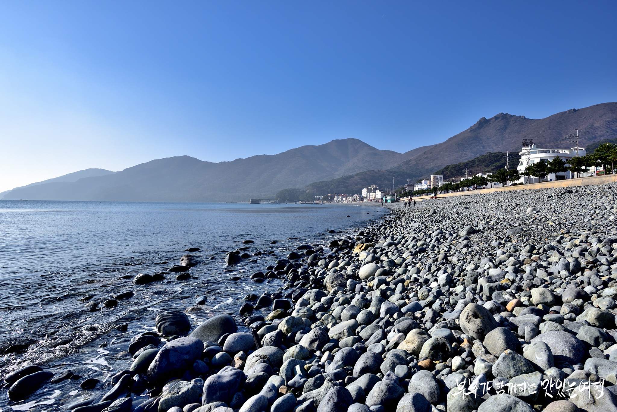 몽돌이라 불리는 조약돌이 해안선을 따라 펼쳐져 있는 해변의 풍경은 여행객들을 압도하게 되죠.