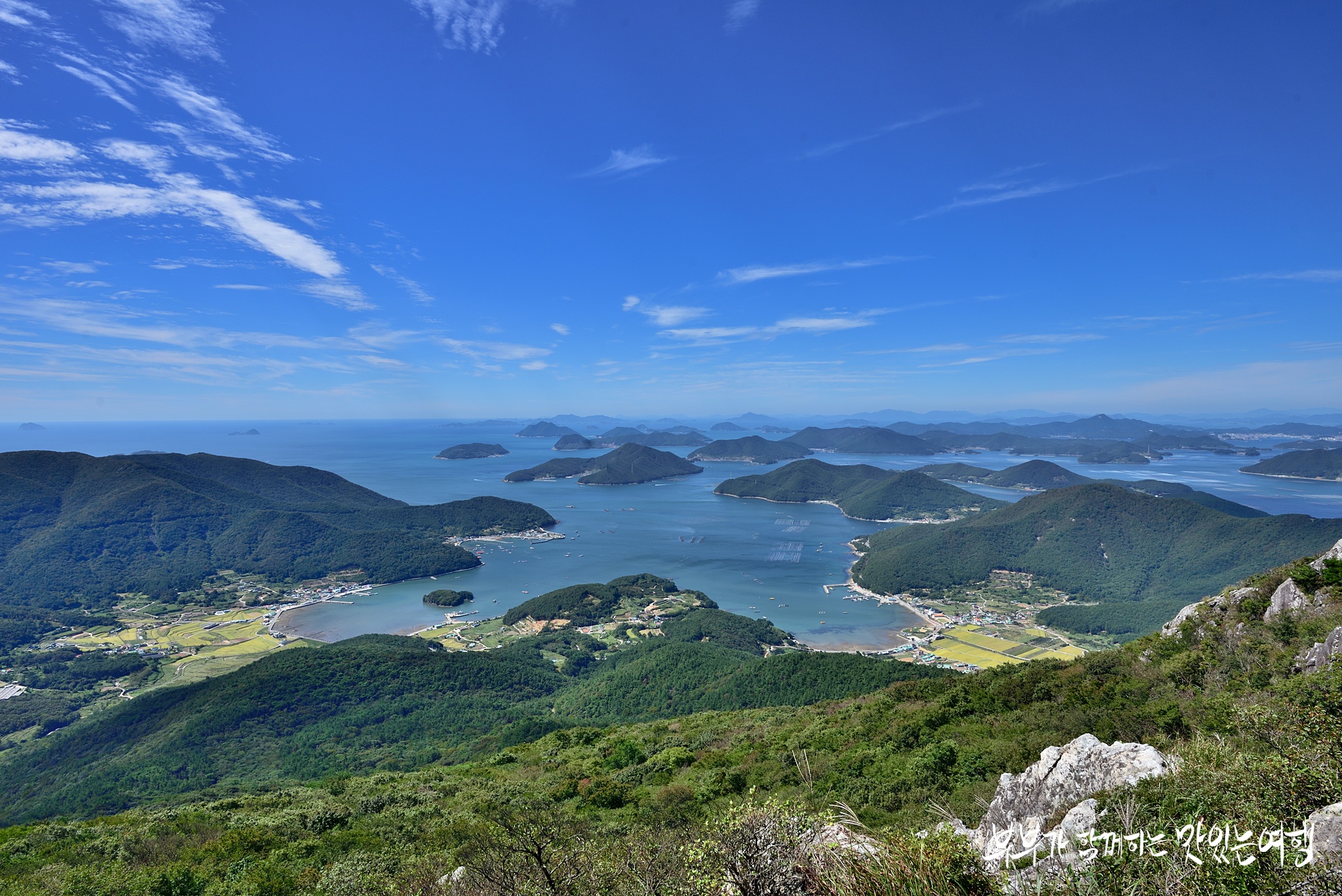 섬섬옥수같이 펼쳐진 섬들과 바다 그리고 파노라마처럼 전개되는 산줄기는 막힌 가슴속을 확 뚫어준답니다.