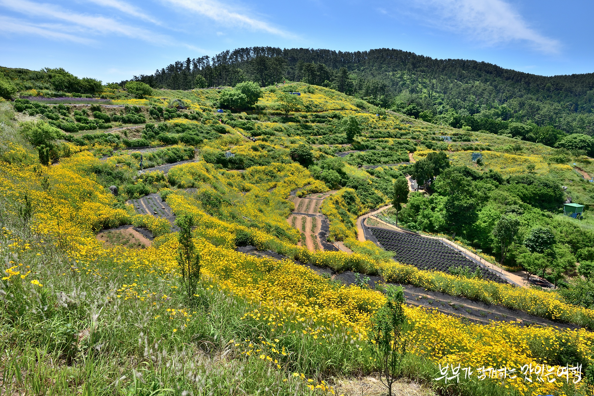 하지만 무엇보다도 지세포항의 하이라이트는 라벤더와 금계국의 환상적인 물결인데요.