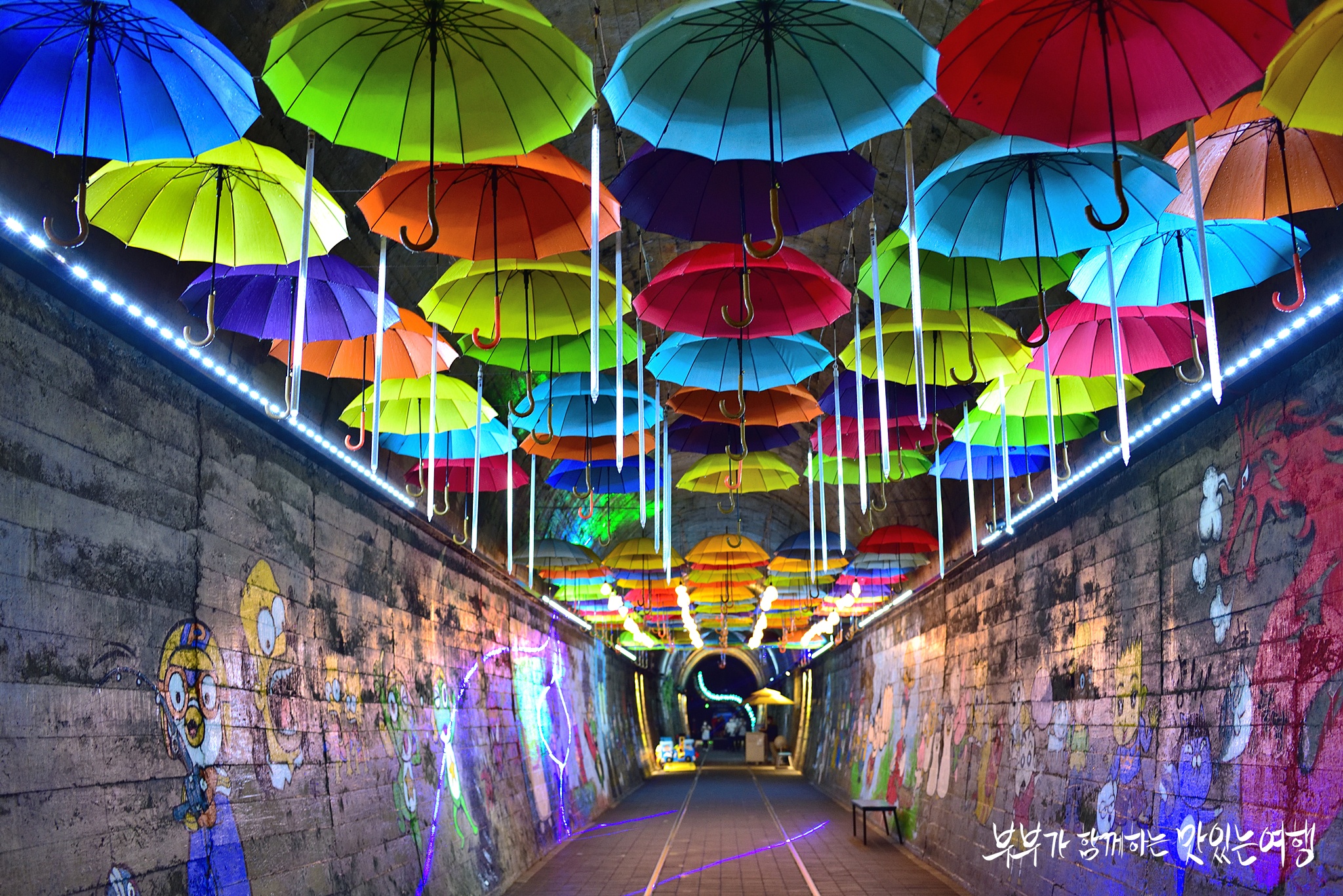 540m의 길이로 조성된 오미자테마터널은 오미자 와인 판매장과 휴게공간 그리고 다양한 만화캐릭터와 포토존으로 구성되었습니다.