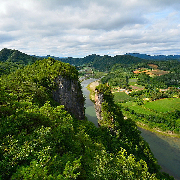 발 아래로 동강이 흐르는 가운데 동강을 둘러싼 첩첩산중은 영월의 빼어난 산수를 대변하는 듯 하죠.