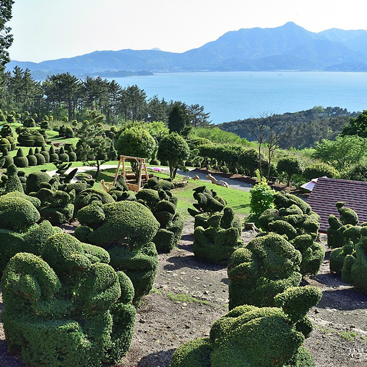 ♬ 남해여행/토피아랜드 ♬ 남해 창선면 지족리에 위치한 토피아랜드는 국내 최초의 토피어리 테마정원입니다. 14년 전부터 5000여평의 선산에 꽝꽝나무와 주목나무 등을 심었죠. 그리고 나뭇가지를 다듬고 모양을 만들어 토피어리 테마정원으로 가꾸기 시작했는데요. 여러 동물모양과 캐릭터 등 700여점의 토피어리가 방문객의 눈을 즐겁게 만들어줍니다. 또한 토피어리 정원 뒤로 병풍치듯 드리운 편백나무숲에서 여유로운 쉼을 누릴수도 있답니다. 다만 도로에서 토피아랜드까지 약 350m의 진입로가 너무 좁다는게 약간의 아쉬움으로 남습니다. 그럼 남해 토피아랜드를 소개합니다. * 여행일자: 2018년 4월 25일 (수) 토피아랜드의 입구 모습입니다. 서두에 언급했듯이 도로에서 토피아랜드 입구까지의 진입로는 차량 한 대가 겨..